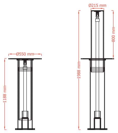 Ever Guardian hydraulic rising bollards are designed for high security vehicle entrances, army, industrial, governmental and commercial buildings or streets which are closed to vehicle traffic between certain hours of the day. Both "High Security" and "Commercial" type Ever Guardian Hydraulic Rising Bollards have the same strength, whereas "Commercial" bollards are shorter than the "High Security" ones. The thickness of the bollard, the underground construction, the self-lubricating sealing and guide ring made of special plastic types, hydraulic piston, flange thicknesses and diameters, hydraulic connections, installation and drainage procedures etc. are all the same. These units are designed to K12 standards. Finite element analysis can be supplied upon request. Typical raise/lower time is 3 seconds but it is possible to design the system to raise/lower in 1.5 seconds.