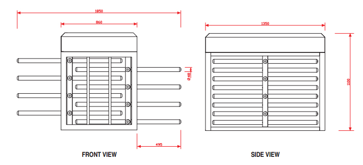 Half-Height Turnstiles are a good solution for the unmanned entrances and mid-level security requirements. Only one person is permitted to pass on each turn of the turnstile. This is achieved by three/four group of wings, standing 90 degrees apart on the square/triangular cross sectioned rotor beam. Frames have a width of 100mm and a thickness of 2mm. Advanced micro processor controlled electronics; fine mechanics processed on CNC machines; contactless position sensing technology; hydraulic damper with adjustable damping ratio; self-centring mechanism design and rust preventing precautions are some of the main factors resulting Full Height Turnstiles' trouble-free, long operation life. A locking sub-mechanism inhibits rotor's turning backwards after 30 degrees of rotation, forcing the passage to be completed. No vibrations and noise occur during operation, with the help of the strong hydraulic damper.